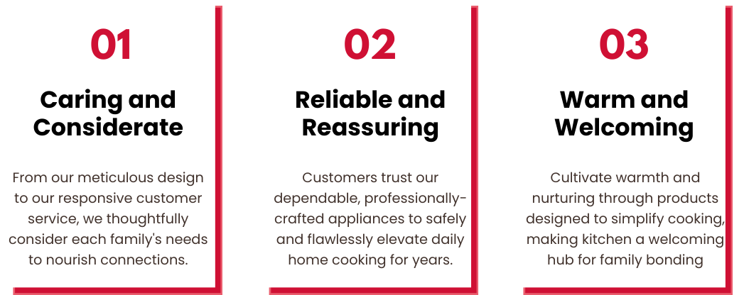 With our commitment to innovation and meticulous craftsmanship, we offer next-generation features and designs, empowering family chefs to explore their creative culinary passions, making home cooking both easy and delightful.